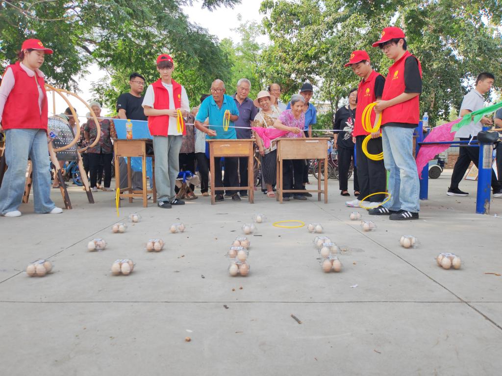 现场气氛最热烈的莫过于“反诈蛋”套圈游戏环节。写满防诈骗小贴士的鸡蛋散落在地,村民们踊跃参与,在赢得“战利品”的喜悦中,实用的反诈知识也轻松愉快地“赢”回了家。欢声笑语与法律知识交织,成为上京村一道独特的风景线。