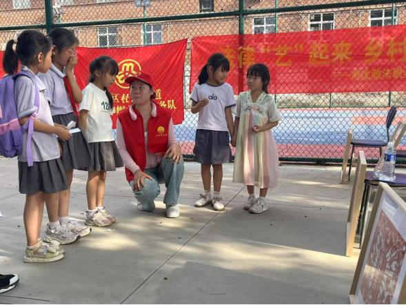 与此同时,一场独具匠心的乡村法治艺术展在村中铺陈开来。学生们将抽象的法律条文、鲜活的案例故事,转化为村民看得懂、有共鸣的绘画、手工艺品等艺术形式。村民饶有兴致地驻足欣赏,在美的感染中潜移默化地接受法治熏陶。学生们主动走到村民和孩子们身边,细致讲解作品的构思与制作过程,巧妙地将法律知识融入其中,让艺术成为传递法治理念的生动桥梁。