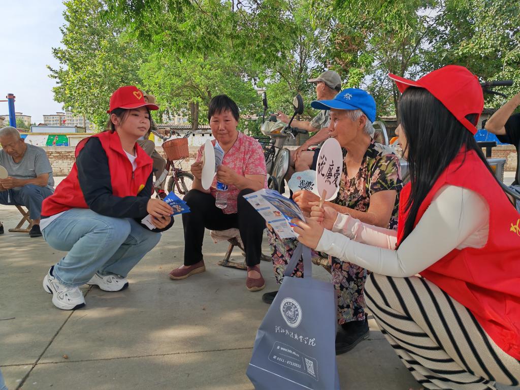 活动伊始,身着统一服装的学生志愿者们热情地穿梭于村民之中。她们不仅发放精心设计的反诈骗宣传手册,更俯下身来,用通俗易懂的“乡音”面对面为乡亲们讲解法律常识,剖析诈骗陷阱,强调知法守法、依法维权的重要性,将法治安全的种子播撒进村民心田。
